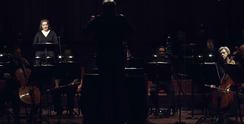 The greatest knowledge and experience belongs, of course, to Bach’s foremost earthly representative, John Eliot Gardiner, with his Monteverdi Choir and English Baroque Soloists. Though streamed for the first time on Good Friday afternoon, this wasn’t live; we had the benefit of the Sheldonian Theatre’s natural light until No. 21a (some way into the much longer Part Two), and then darkness outside, subdued hues within, all of it skilfully filmed with singers placed at various levels (pictured below). Dramatic drive came partly from all vocalists knowing their parts by heart – no scores – and Gardiner’s familiar thrust, guttiness and dissonance immediately piercing in the first number.
