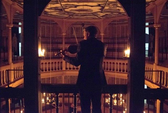 Atmospheric use was made, as always, of the candlelit chandeliers rising and falling, of Eike fiddling at one point like Brother Death against the black behind the central door and then ascending on high. And the last, as on the disc, was best: the same cathartic major melody which Eike had played at his father’s funeral, Neil Gow’s Lament for the death of his second wife, swelling to full-ensemble humanity before receding into the ether. Any amount of dolefulness could only make this epiphany the stronger. And yes, pace Dowland, my tears did indeed flow.