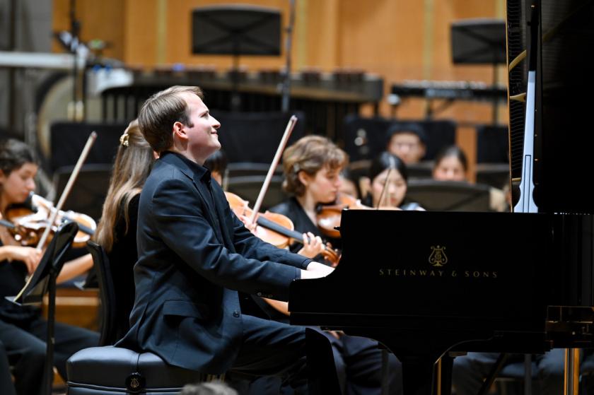 Yet in the cutthroat world of being an international pianist – in which excellence is the minimum achievement – does he have what it takes to assert himself as a distinctive voice on the world stage? We had some time to contemplate this in the first half before Kaploukhii came on as  – under the assured baton of American-British conductor, Johann Stuckenbruck – the orchestra gave a nimble and vibrant account of Mozart’s Symphony 35 in D. This was followed by a rendition of Richard Strauss’s Serenade for 13 Wind Instruments in E flat. There were some creaky moments, but overall the ensemble won through with a rich, butterscotch warmth.