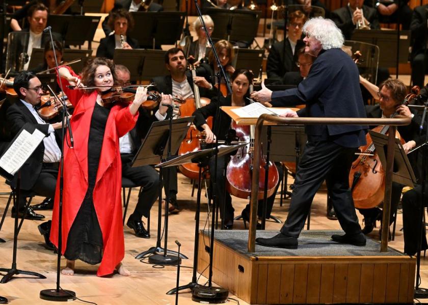 The Bartók concerto I've previously found diffuse, hard to concentrate on throughout, but not here where a perfect collaboration between violinist, orchestra and conductor lived every moment. The Magyar dance elements had all the earthiness they really need, but rarely get, with totally justified barefoot stamping from Kopatchinskaja matched to spot-on intonation; the dreamier aspects had visionary intensity; and there was plenty of humour, especially in the scherzoid variation just before the end of the Andante tranquillo. Kopatchinskaja wittily mimed the brass rasps which threaten to disrupt the first movement, and dovetailing with collective and individual LSO players was impeccable throughout.