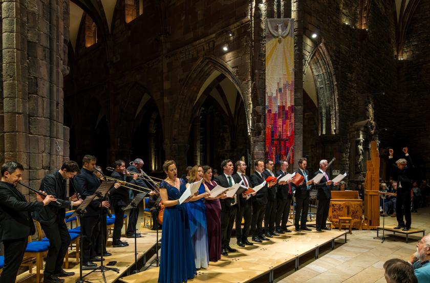Those events filled (in every sense) the biggest venue among the dozen that Lammermuir uses, spread around the towns and coast of East Lothian. The Lammermuir hills themselves, site of Walter Scott’s and Donizetti’s dramas of marriage, mayhem and madness, rise just to the south. Some 20 miles east of Edinburgh, St Mary’s in Haddington officially ranks as a parish church but resembles, and feels like, like a cathedral. A medieval Franciscan foundation, the 200-foot-long church was wrecked by English armies during Henry VIII’s “rough wooing” of Scotland in the 1540s and only fully restored (and re-roofed) in the 1970s. Compact in forces, mighty in impact, the singers of I Fagiolini (and, in the Monteverdi, the suitably scary-looking Renaissance instruments of the English Cornett and Sackbut Ensemble, pictured below by Sally Anderson) made its renovated rafters ring and shake.