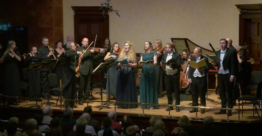 At first the Advent cantata, Bereitet die Wege, bereitet die Bahn!, felt a touch hesitant, with voices and woodwinds not quite ideally balanced and a stuttering moment or two. Soprano Hilary Cronin (pictured below by Helena Cooke) soon settled into her stride, polished and secure, with savoury contributions from the lower strings (Sarah McMahon’s cello and Cecelia Bruggemeyer’s double bass) and the first of many finely-sung alto arias from counter-tenor Hugh Cutting. In “Süsser Tröst, mein Jesu kommt”, written for Christmas 1725, Jessica Cale’s smooth, rounded and expressive soprano delivery sweetly complemented ravishing flute and string parts in the opening lullaby. The closing chorale gave a hint of the heft and lustre that this handful of singers could achieve, although the firmly grounded and nicely phrased recitatives from tenor (Charles Daniels) and bass (Jerome Knox) had helped prepare the way. In the following “Gloria in excelsis deo”, which Bach would later evolve into a section of the B minor Mass, the trumpet trio glinted and soared for the first time as this small-but-mighty choir blended punch and precision into a cathedral-strength sound. More splendid flute-playing, from Rachel Brown and Katy Bircher, added to the jubilation while Adrian Butterfield ensured that the whole caravan moved along with a magisterial tread, purposive but never frantic.