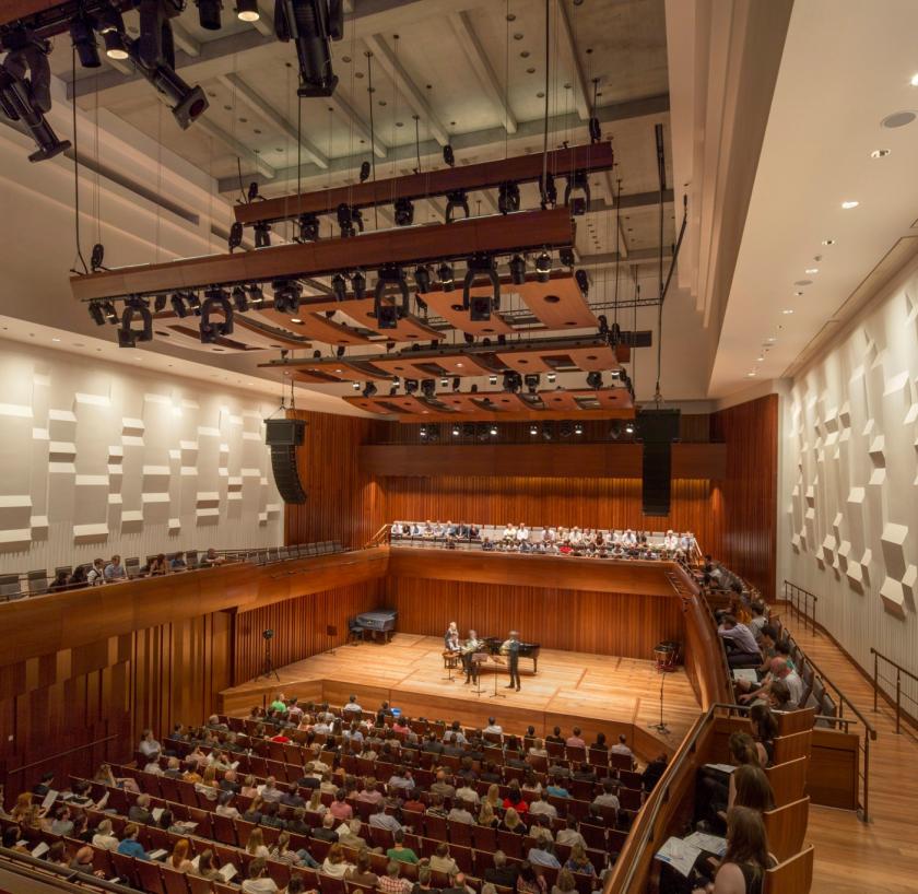 Last night’s main event was to inaugurate the 608-seater Concert Hall. Odd in these straitened times to think of it with Kings Place’s Hall One down the road, which opened only five years ago, though it's great to have both. Acousticians of choice Arup worked on the two halls, so it’s curious that the smaller venue in Kings Place (420 seats) sounds as well as feels more spacious (and its single-oak panelling is still more handsome than Milton Court's sapele timber). But then perhaps a full antiphonal brass ensemble, organ and percussion to start and a capacity late-romantic orchestra to conclude were not the best choices for the Milton Court centrepiece: it’s rather like getting the full London Sinfonietta to grace the Wigmore. The GSMD Orchestra will indeed be giving concerts here, but the majority of events will be for chamber forces or voice and piano, and those were what I look forward to testing more keenly.