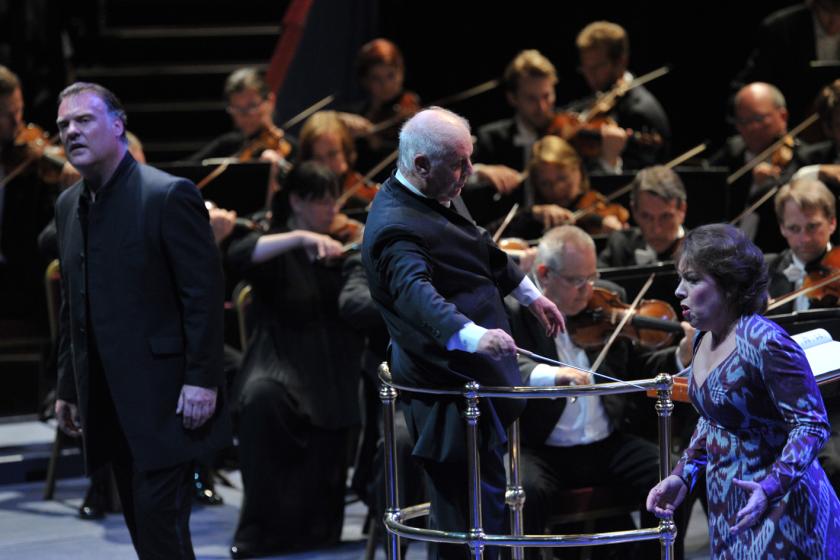 Things may be falling apart, a storm now rages but new broods of humans and demigoddesses have been fathered by chief god Wotan, who has undergone a Doctor Who like transformation from Iain Paterson into Bryn Terfel. Four new top singers appear on the scene after Monday night’s Rheingold superhumans, but Daniel Barenboim is still very much in control to colour and shape another deluxe semi-staged narrative in his Ring epic, this time about the steely warrior-maiden Valkyrie who came to know love.
