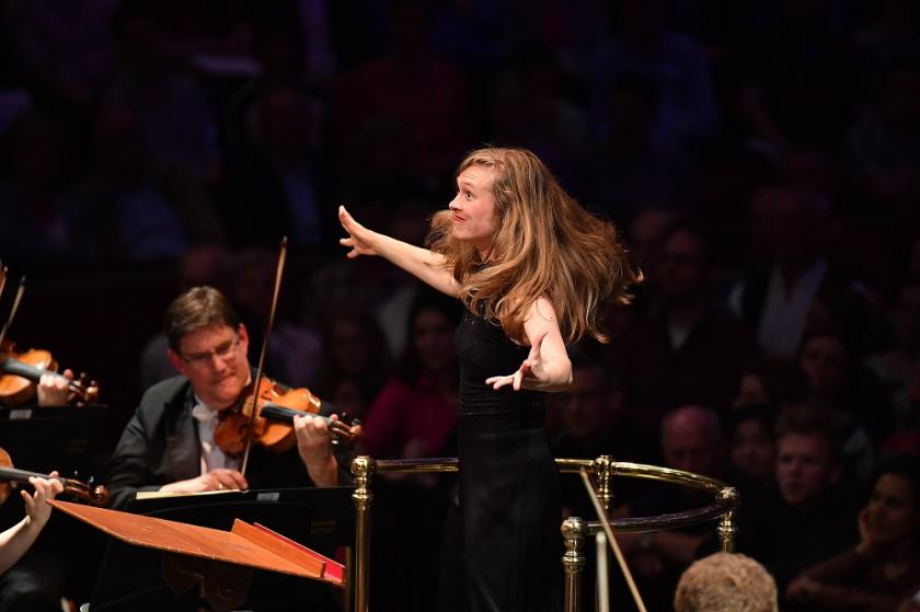 Mirga – the single name is as likely to stick as Adele or Beyoncé – conducted her Beethoven without a score or a stick. Potentially dangerous, in the latter case, when so much rhythmic precision is needed. There was no need to worry, though: the liberation of Florestan by his courageous wife in the Leonore No. 3 Overture flew with both spirit and focus, while the offstage – back of the hall – trumpet call conjured more drama than the whole of Juanjo Mena's half-tilt Fidelio performance earlier in the Proms. Usually it's the flute solo after it that sets the spine tingling, but here Mirga urged a very special other-worldly sense of awe from unison winds just before. The flurry of string activity into the final victory was done by starting with the front desk of violins and spreading to the back – another cause for frisson.