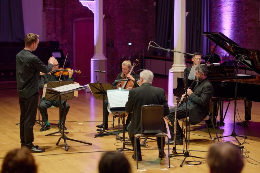 Manchester's champions of contemporary music, just stripped of support by Arts Council England, are undaunted and last night continued doing what they do best. A small ensemble of virtuoso players brought a large and appreciative audience at Hallé St Peter’s a set of four challenging pieces, with a world premiere and a UK premiere among them.