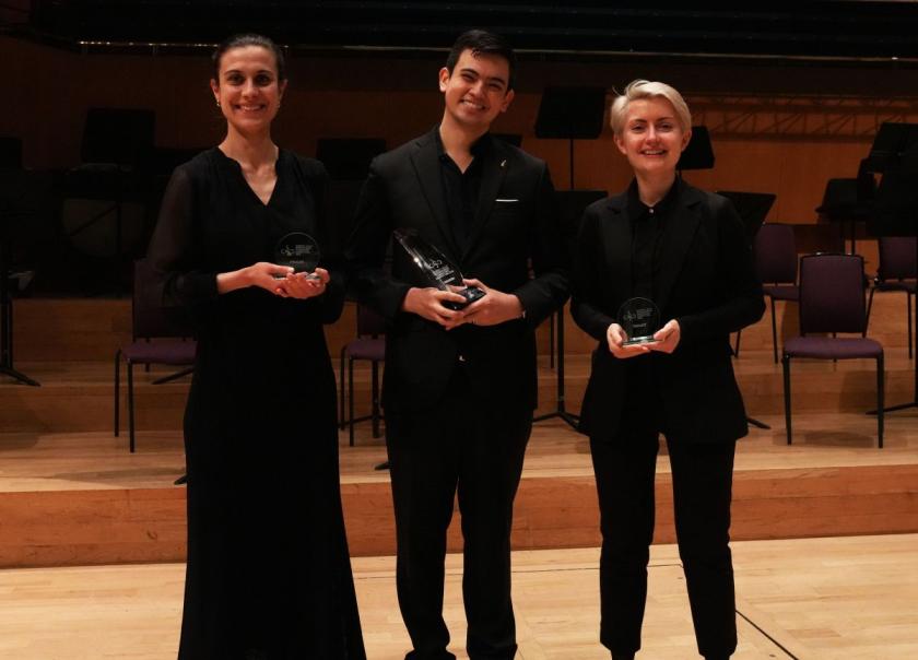 The three finalists with their awards after the competition: l-r, Nina Haug, Aku Sorenson, Claudia Fuller