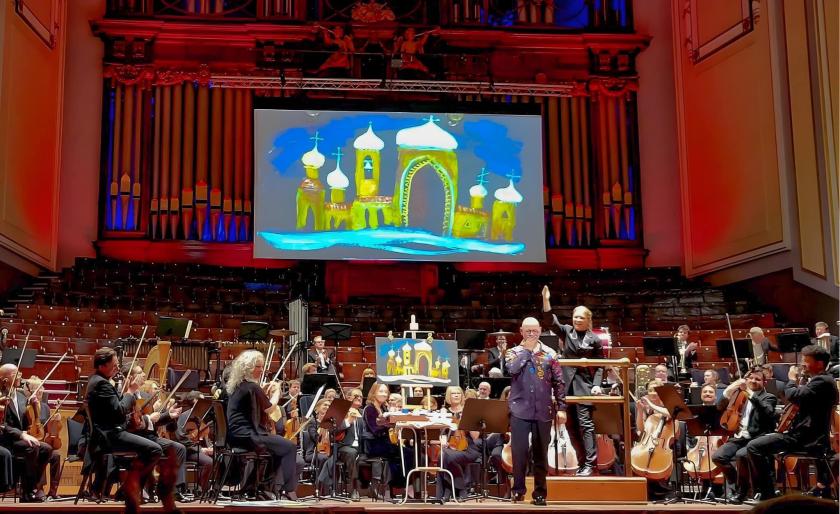 The programme in Edinburgh's Usher Hall began at 6pm with a smorgasbord of delightful show pieces by the pupils of St Mary’s Music School, celebrating its 50th anniversary, and continued with a full programme from the Royal Scottish National Orchestra, effortlessly squeezing in two diminutive saxophone concertos before the interval and Musorgsky’s Pictures at an Exhibition after – the latter embellished by a real live artist quite literally painting an accompaniment to the music. One slightly dazed member of the audience confessed to me that there had been almost too much innovation and creativity for one evening.