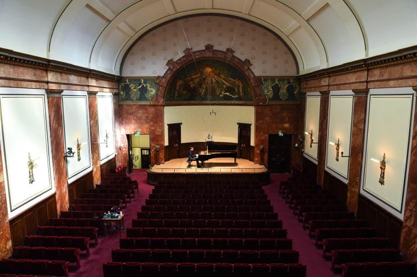 For now, though, the sound and sight (the concert was livestreamed by the Wigmore Hall, and remains available on their website; donations are requested but not required) of Hough playing to an empty hall, provoked the sort of widespread and heartfelt reaction on social media that most chamber music promoters can usually only dream about. At least 2000 people are reported to have watched the livestream, and Hough (pictured below in a still from the filmed concert) proved to be an inspired choice to re-launch concert life in the capital. Few living pianists manage to combine open-hearted virtuosity with so tangible and unaffected a sense of an inner world beyond the notes: Hough is a fundamentally compassionate artist who never turns his back on his listeners even when the composer is in full inward retreat. Hough’s choice of repertoire revealed something too. He began and ended with Bach; a composer whom Hough has said that he finds difficult to love (an admission whose full courage in today’s conformist classical climate can probably only be fully appreciated by those who feel the same way). Interestingly, he’s said something similar about Schumann, whose C major Fantasy made up the majority of the second half of the programme. Perhaps, for Hough, a sense of struggle – of friction beyond the matter of mere self-expression – was what the occasion demanded.