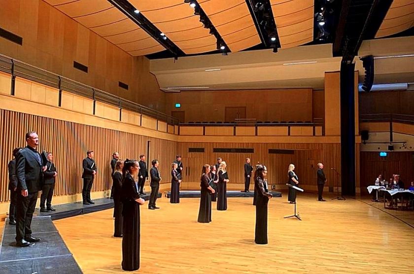 While the big choral societies are asking, with good cause, why they remain silenced when it’s OK for football fans to sing on the terraces, the top voices of smaller ensembles are being heard again by select audiences. Not so small, in the case of the 24-strong young opera choruses of Garsington (times two, the groups divided between operas) and Grange Park Opera. Tenebrae in the wide-spread group its director Nigel Short (pictured below by Sim Canetty-Clarke) offered us in the welcoming space of Saffron Hall came close at 20 singers, and expressively unsurpassable in a typically ambitious programme.