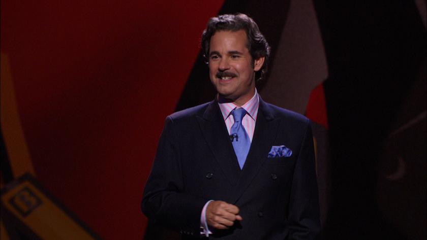 Paul F Tompkins has been lauded by Rolling Stone magazine and the Huffington Post, both for his observational stand-up and his podcasts. But for someone praised for a very modern form of entertainment, he strikes a rather old-fashioned figure when he comes on stage. Three-piece suit, shiny tie, watch fob in his waistcoat pocket, big hair - it's like he's channelling the late, great Dave Allen.