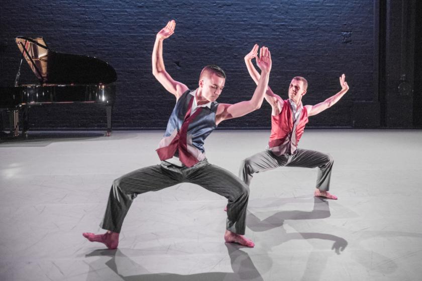 The longing being explored is more than just Chopin's homesickness for PolandRichard Alston's own contribution to the night's new work was Mazur, a duet for brilliant young company dancer Liam Riddick and Jonathan Goddard, the ex-Rambert dancer who is one of the most celebrated male contemporary dancers in Britain. It explores longing through the medium of Chopin mazurkas (from Ops 30, 7, 33, 68, 67, 41 and 50), moving between the brighter feelings of pride in Ops 30, 68 and 50 and the pain, loss and longing in the much darker tones of Ops 33 and 41 (all played on stage by Jason Ridgway). Riddick and Goddard wear waistcoats that suggest the 19th century, and each short mazurka ends with a gesture straight out of that era's dance – the presentation of an elbow that a lady might take, a low formal bow, or a confident heel-snap with upraised arms. All seem gently ironic or even tragic-comic valedictions after the substance of the dance in each mazurka, which is far more contemporary, contemplative, emotional and even sensual (the duet set to Op. 41 has Riddick gently pressing his face into Goddard's back and embracing him). The longing being explored is, we surmise, for a more general sense of safety or belonging than just Chopin's fernweh for Poland, and not apt to be easily satisfied by anything as straightforward as a return to the beloved homeland.