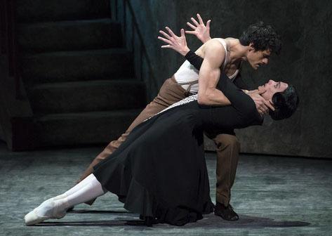 Carlos Acosta now dances the vulnerable man with a gripping, piercing economy; Leanne Benjamin remains the ne plus ultra of the ethereal, airborne Madonna/child/dove in white, a quite extraordinary interpretation with her tiny body and big, merciful hands; while I think Marianela Nuñez may have done nothing finer than the proud, gracious Everywoman. This devoted company performance revealed something about the dancers, that they knew without doubt (as they did not with the other two works) that this is a ballet to rediscover self-belief in, testament to a great choreographer of superb imagination and most honest humanity. (Pictured right, Benjamin and Acosta)