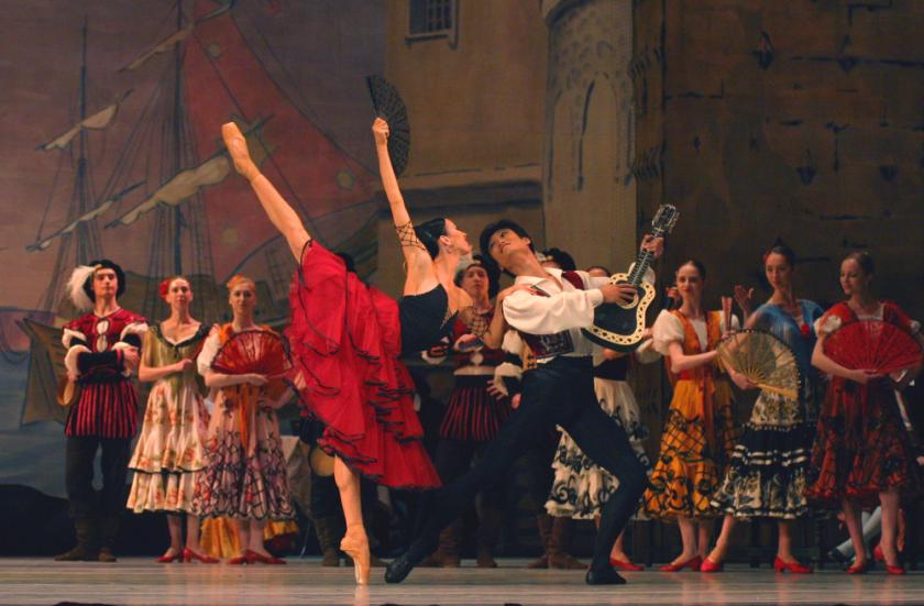 The real scene stealer among the supporting dancers was Olga Belik's Mercedes, whose stupendously supple variation of balletified flamenco thrummed with charisma. Konstantin Zverev, another second soloist who has a leading role on this tour (as Count Vronsky in Alexei Ratmansky's Anna Karenina) was a likeable but not especially Spanish toreador, though his flexibility in backbends and renversés was a lovely surprise. Otherwise the succession of street dancers, gypsies, and flower sellers was competent but unremarkable. Much the same can be said of the music, though in fairness to conductor Boris Gruzin it's hard to do much with Minkus: it was designed for counting, not feeling.