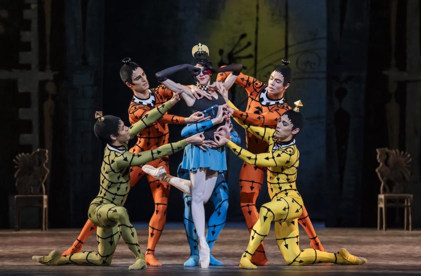 Danses Concertantes – named after its Stravinsky score – was made in 1955 when MacMillan was just 27, an explosion of acid colours and quirky shapes (pictured above and main picture) that match the fractured structures of the music. While not being about anything, the piece has a pronounced carnival atmosphere with hints of cocktail-party glamour and the new social dances such as jive. Faces are set in profile, feet flick like knives, and knee and elbow joints work overtime with mechanical precision. Crazy speeds and tricksy, on-the-beat steps raise the odd laugh. The only let-up is a glorious pas de deux in which MacMillan’s later mastery of partnerwork is already visible in embryo as the boy swoops the girl laterally across his spine and back again, just like that. Another boy, tricked out as a hotel bellboy-cum-jester, bounces Tiggerishly in punishing forward-slash jumps before landing in the splits – from which precarious position he is hauled up by a gaggle of concerned females. Who knew the mid-Fifties were so much fun?