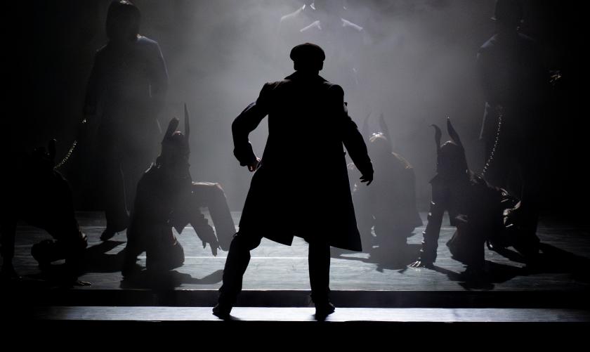 One key problem with the piece is that its creators, the TV series' writer Steven Knight and Rambert's artistic director Benoit Swan Pouffer, attempt to scrunch too much into its 100-minute span: four whole series’ worth, 24 hours of transmission time by my reckoning. We meet the Shelbys in the First World War trenches, where Tommy (Conor Kerrigan, pictured below with Hannah Hernandez) and two of his brothers, Arthur (Dylan Tedaldi) and John (Tom Davis-Dunn), have been fighting until they are “dead inside”, as a voice-over from the late Benjamin Zephaniah – who played a priest called Jeremiah Jesus in the TV series – informs us. Dialogue from the TV series featuring Cillian Murphy, Helen McCrory, Paul Anderson and Tom Hardy also wafts in and out, distorted and echoing so that it too isn’t totally clear.