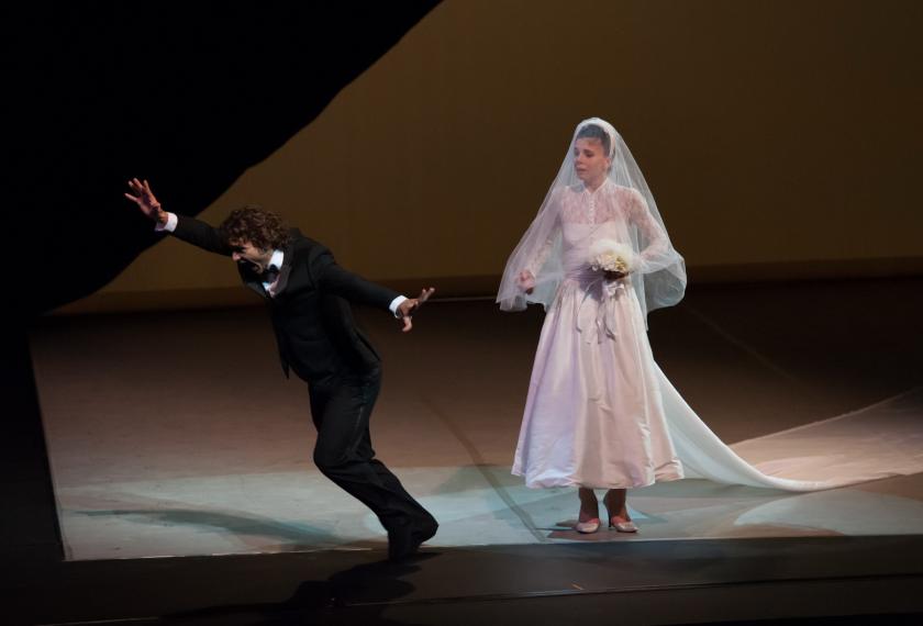 But the vast majority of the fun on offer in the programme is concentrated in Arthur Pita’s piece, Facada, a terrific, very black comedy about a jilted bride. Pita succeeds because he plays to these dancers’ strengths: as well as their phenomenal physical abilities, what has always marked Osipova and Vasiliev out is their storytelling, both comic and tragic. Pita gives us Osipova in a white dress tripping buoyantly around the stage in delighted anticipation of her wedding, Vasiliev dancing his constricting tuxedo off after abandoning her at the altar, and a series of increasingly chilling interactions between them, as a deranged Osipova forces him to dance a loving duet, even moving his jaw to make him mouth a love song.