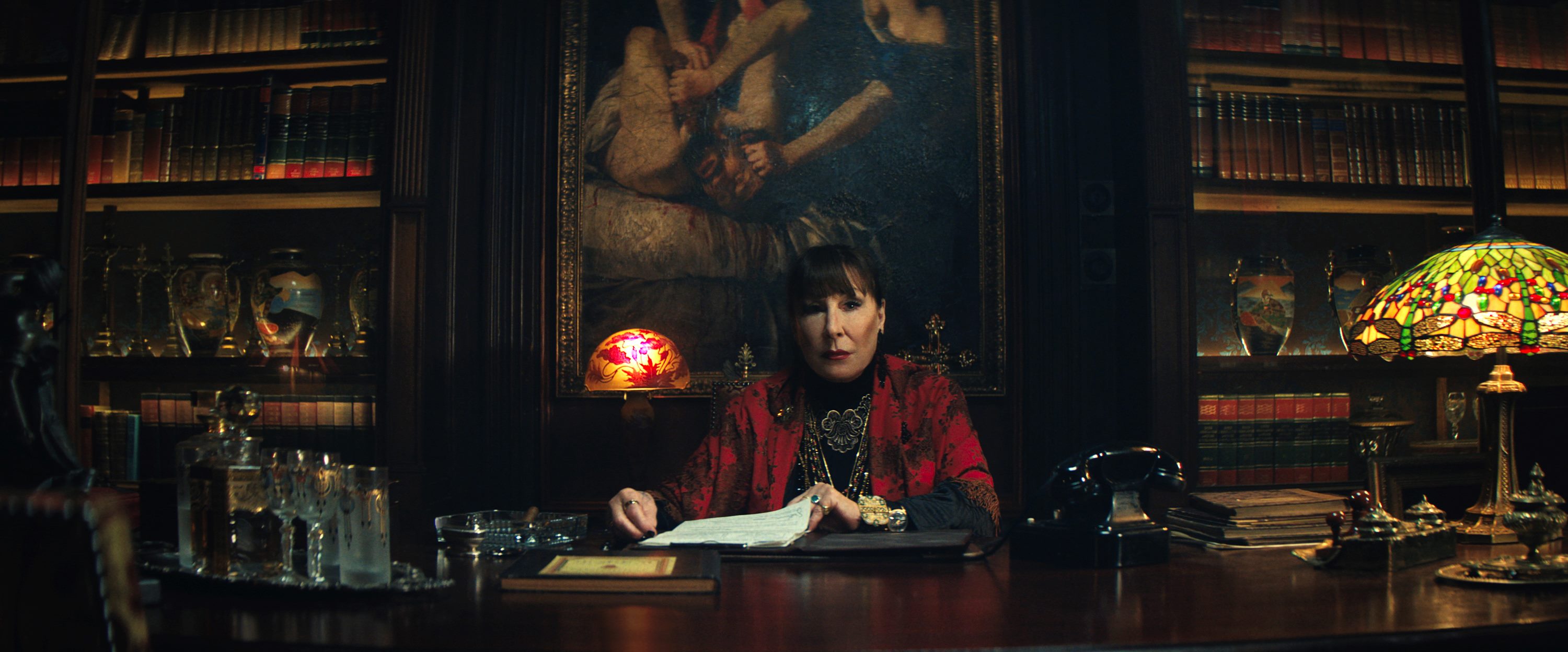From the World of John Wick: Ballerina, to give its full cumbersome franchise title, takes place between John Wick 3 and 4, prior to the latter’s perhaps final denouement. We meet Eve as a child hiding out with a dad whose particular set of skills are sorely tested by a mass assault by minions of the Chancellor (Gabriel Byrne), chief of a killer cult rival to Wick’s Ruska Roma. Eve proves a dead shot even before she is taken under the relatively kindly wing of Winston Scott (Ian McShane), proprietor of the neutral hotel where assassins kick back, then Ruska Roma’s Director (Anjelica Huston, pictured below), who schools her protégés in The Red Shoes-like, bleeding en pointe and parallel ninja skills.
