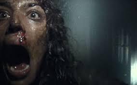 There are six interlopers in the Black Hills forest this time: James (James Allen McCune), the brother of the original film’s doomed heroine Heather, who he hopes to find, ambitious student film-maker Lisa (Callie Hernandez), James’s best friend Peter (Brandon Scott) and his girlfriend Ashley (Corbin Reid), and two locals obsessed with the Blair Witch legend, Lane (Wes Robinson) and Talia (Valorie Curry), pictured above. Wingard and his regular writer Simon Barrett are both associated with the “mumblecore” school of low-key, hipster badinage as well as horror, and their six Witch-seekers are realistic and sympathetic characters, with palpable, silent sexual tension between James and Lisa, deepening their humanity. There’s some sense of a real, haunted Southern place, too, from the Confederate flag on Lane’s wall which disgusts Peter to the local couple’s gloomy recounting of the Black Hills’ history of death, a source of almost proud identity which makes the outsiders’ snigger.