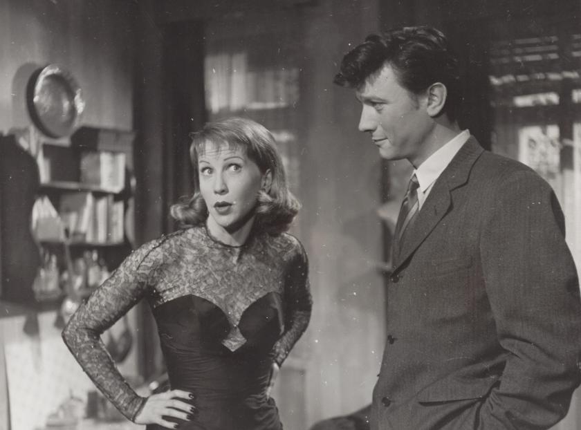 Chris’s offer to support Sally with his writing becomes a non-issue when her situation is resolved. He shows his decency, too, by denouncing anti-Semitism and slugging a Nazi in an awkwardly staged street brawl. The film gives greater weight to the moral dilemma faced by Chris’s German friend Fritz (Anton Diffring), a closeted Jew who must decide whether or not to tell the truth to his estranged girlfriend Natalia (Shelley Winters), a Jewish department store heiress and Chris's English student, knowing he’ll face persecution. It’s tempting to think Collier, restricted by mid-1950s morality, intended Fritz’s “coming out” as a veiled substitute for Chris’s as a gay man, but that seems unlikely, depite the clever example of the then recent Calamity Jane (1953). I Am a Camera didn't lack the courage of its convictions – it had none.
