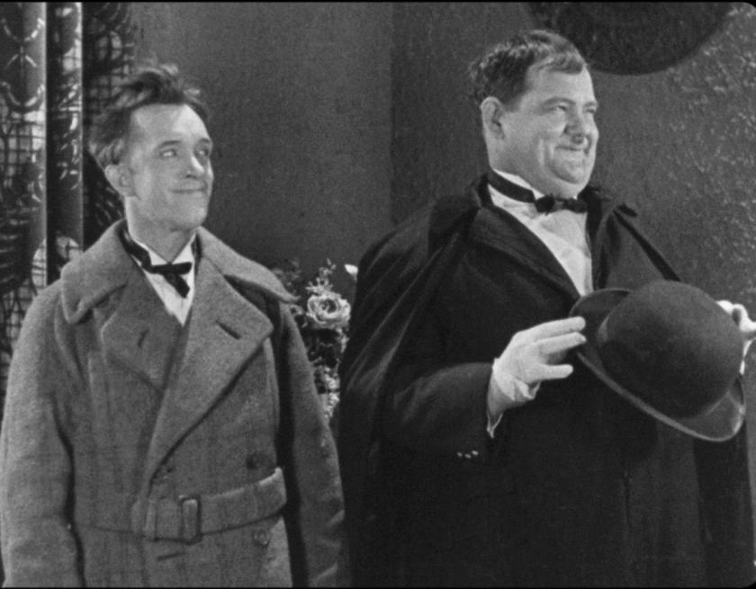 There are lots of ‘firsts’ here: Leave ‘em Laughing contains an early glimpse of the two men sharing a cramped double bed, and The Finishing Touch is the first of their "working man" shorts. Stan was disappointed by the film’s technical and continuity shortcomings, though Ollie’s ingesting a fistful of nails and Stan’s physically impossible carrying of a very long plank had me giggling. We get a perceptive interview with Neil Brand, emphasising that these 1928 films were the first to set the two comedians in, and against a recognisable, real world, and that the gags are better prepared and signposted than before. Try From Soup to Nuts, Stan and Ollie booked as waiters-for-hire at a posh dinner party (their business card reading “All we ask is a chance”). With each appearance of a huge cake comes the realisation that it will either be dropped or fallen into; that the joke is repeated several times doesn’t make it any less funny. Stan is instructed to serve the salad "undressed" – how he does it won’t surprise anyone.