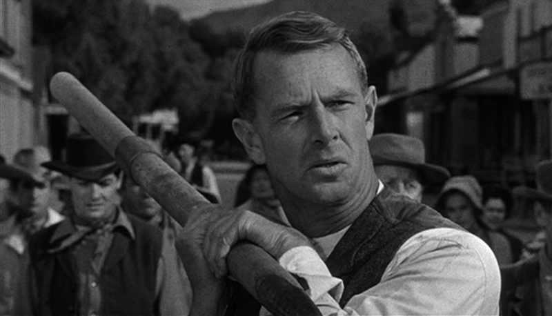Brave resistance is embodied in the avenging figure of George Hansen (played with impassive steel by Sterling Hayden), who confronts the sadistic yet melancholy gunman (Nedrick Young) hired by McNeil to eliminate those who would oppose him. The latter is a classic figure of violence, transplanted straight out of the film noir tradition, as well as left-wing mythology: black-gloved and black-shirted, he's a fascist bully-boy who mistreats his girlfriend and takes a perverse pleasure in watching Hansen being humiliated, or in killing his harmless victims.