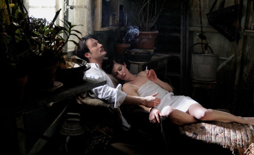And now here comes Chanel No 4 in the sinuous, gazelle-like form of Anna Mouglalis who, also having the baritone voice of a seasoned smoker, would seem ideal casting. (She can be seen as another French icon in Gainsbourg: she has a cameo as Juliette Gréco.) Whether the same can be said of Mads Mikkelsen as Stravinsky is less certain. They’ve put him in some little Russian specs to help him with the creative introspection thing. And he can certainly hammer out an angry Stravinskian beat on the piano. But it's somehow a distraction that in the bedroom scenes Stravinsky is revealed to have the rippling trunk of a hero from Greek myth.
