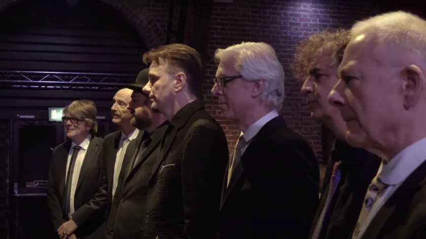 Until the death in March 2020 of 59-year-old Bill Rieflin, then one of Crimson’s four drummers, the lineup of seven (latterly eight) musicians had been stable since 2014. Rieflin’s passing – which he confronts with formidable stoicism on film – reduced the band to Fripp; saxophonist and flautist Mel Collins, who was a pivotal member in the early ‘70s; bassist Tony Levin; singer-guitarist Jakko Jakszyk; and drummers Gavin Harrison, Patrick Mastelotto, and Jeremy Stacey. Crimson’s history had hitherto been marked by constant ruptures and hiatuses as original members Greg Lake, Michael Giles, Ian MacDonald, and Pete Sinfield departed, followed, in due course, by Gordon Haskell, Andy McCullough, Ian Wallace, Boz Burrell, John Wetton, Jamie Muir, David Cross, and Trey Gunn.