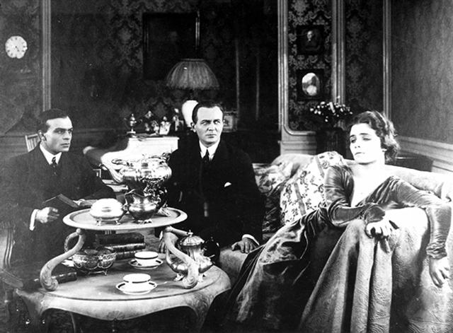 A bunch of stiff-backed poshies – a retired judge, sundry counts – are at a countryside castle for a hunt. Rain stops play, so they have to hang out indoors. The creepy Count Oetsch rills up, uninvited. He’s the brother of the deceased former husband of an expected guest, Baroness Safferstätt – a fantastic, chest-heaving, hyperventilating Olga Tschechowa (Anton Chekhov’s niece). His arrival causes havoc as the Count, though never convicted, is assumed to have killed her former husband to get his hands on the title. The tension is racked up further by the expected arrival from Rome of the priest Father Faramund. Lord Vogelöd is stressed by Oetsch’s arrival and cannot get him to leave. Speculation is rife and imaginations run wild, leading to extraordinary, arresting scenes in the film’s third act - scenes that borrow the new-to-film Expressionism of (then most recent) 1920's Der Golem and The Cabinet of Dr Caligari, telegraphing where Murnau and Vogelöd's cinematographer Fritz Arno Wagner would be the next year with Nosferatu.