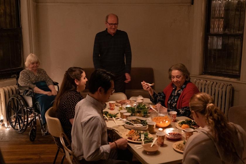 It's no wonder that the final shot plunges its last remaining visible character - Richard Jenkins's anxious paterfamilias, Erik (pictured above with Jayne Houdyshell) - into darkness. Karam's assemblage exist perilously close to the abyss: the duplex Chinatown apartment newly occupied by younger daughter Brigid (Beanie Feldstein) and her boyfriend Richard (Steven Yeun, late of Minari) is located not far from Ground Zero, which would seem to be the psychic point inhabited by each of these characters in different ways. One of them, we learn, might well have perished on 9/11 had luck not intervened.