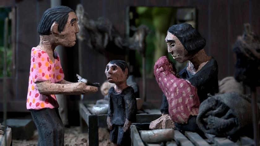 The director has tackled this momentous subject before in a number of films, both documentary and fiction. The Missing Picture adds a new element, the use of clay figurines, fashioned and painted before our eyes, depicting family members and others in a series of still tableaux that are combined together with plentiful documentary material drawn from Khmer Rouge archives. It’s told to a mesmerising but quiet narrative (in the voice of Randal Douc): the unlikely result can only be compared to something like a story from Solzhenitsyn, told in stop animation that never starts, with an occasional visual style that Chagall would have understood, and meditative overvoice commentary (recalling, somehow, Agnès Varda in The Gleaners and I).