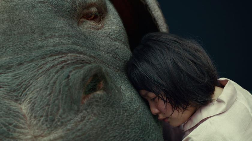 The titular star is a new breed of super-pig, a genetically modified gentle giant who looks more like a hippopotamus minus the jumbo incisors. We first meet her in the tree-blanketed Korean mountains where she enjoys an idyllic existence as a household pet cared for by her loving young companion Mija. As they frolic by pools and in the woods, their intense mutual bond is tested when Mija slides down a slippery scree and dangles over a cliff until she’s rescued by the clever, resourceful Okja.