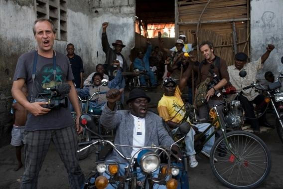 Benda Bilili! is in some ways very Hollywood – the story of a dream of stardom which comes true despite incredible odds. On the other hand, the subject matter of a group of homeless paraplegic musicians in a band called Staff Benda Bilili (which means something like “looking beyond appearances”) in one of the most dangerous cities in the world – Kinshasa – is hardly Tinsel Town. As the film-makers relate below, they themselves were also “nobodies” when they started filming, in the sense that they had no experience of film-making and little money.