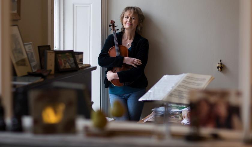 A few years later, now settled in Scotland, and with a bit more experience under my belt, I reminded him of his suggestion that I could write for the Academy. He was true to his word. He asked me to write a celebratory piece for the Academy’s 35th anniversary concert in 1994 at the Royal Festival Hall, and I composed Walking Back – a reference to my great-great-grandfather having walked to London from Edinburgh to seek his fortune, and my own arrival in Scotland in 1990, with a strong sense that I had family roots there. As well as celebrating the Academy, it expressed the joy of motherhood; and included a lullaby for the strings [Sally Beamish pictured below by Mihaela Bodlovic, courtesy Sound Festival).