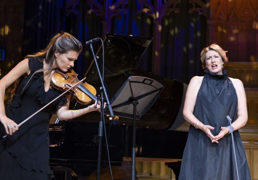 And, darn it, she’s only gone and done it again. This year’s first night (★★★★) again featured a range of stars from across the opening weekend, with a heavy input from María Guinand and her Schola Cantorum de Venezuela, who sang, bopped, and maraca’d their way through several numbers (pictured above). Osvaldo Golijov introduced some members of Orquesta La Pasión, who played a merengue that didn’t seem to coordinate but which didn’t seem to bother anyone. The Leonore Trio played the slow movement of Beethoven’s Ghost Trio, and Sarah Connolly finally got to sing "Erbarme dich", this time with Benedetti herself playing the violin obbligato.