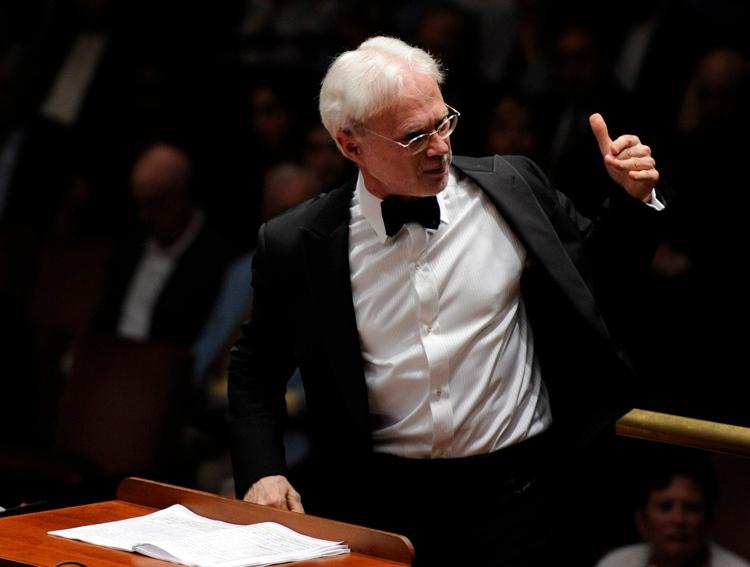 One top student orchestra playing on its own can be exciting enough. Two playing together can produce a charge of dynamite that might not leave the building standing. That was so anyway in last night’s Prom, when players from New York City’s Juilliard School and London’s Royal Academy of Music, by now frequent collaborators, joined up to shake the earth with thunderous brass, swooning strings, diamond precision, a velvet bloom – every characteristic of a world-class orchestra except the honour of being conducted by Lorin Maazel.