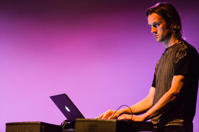 For the third movement, I had come up with a slowed-down hip-hop inspired “groove” for the orchestra, and so I wanted that movement to showcase all the classic scratch ornaments that clearly referenced the hip-hop roots of turntablism. DJ Yoda, for whom I originally composed the work, insisted that he needed a vocal sample in order to do classic scratch solos. But I had set myself the rule of only giving the turntables sounds created by the orchestra, so I added a little bit of theatre to the score which instructs the musicians to start chatting, and then have one yawn loudly, another exhale loudly after sipping on a fizzy drink, and finally have the conductor cough in order to silence the chatter. These three different vocal sounds all work really nicely as scratch sounds, and also clearly show the audience how any sound from the orchestra can then become musical sounds for the turntablist, even if they are just a cough. This moment also brings in humour to the piece and so broadens the emotional contrasts in the Concerto which I think is very important in such a piece. [Pictured below: Gabriel Prokofiev with Yekaterinburg conductor Alexey Bogorad].