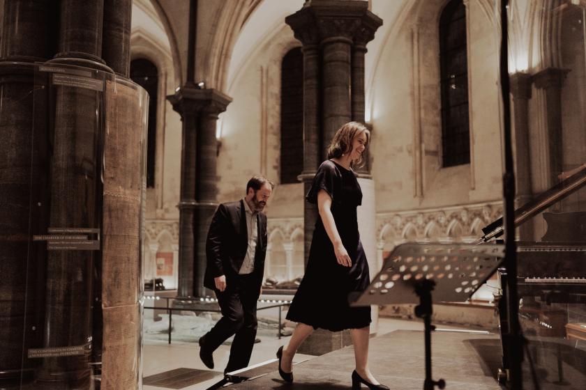 The first half worked brilliantly as a sequence, with all kinds of unexpected twists, turns and, not least when the singer joined Kynoch at the piano to play the upper, hand-crossing part of the Bach/Kurtág “Gottes Zeit ist die allerbeste Zeit”. At the end of the sequence, there was another diversion – singer and pianist went on a walkabout, both singing, into Temple Church’s echoing round nave.