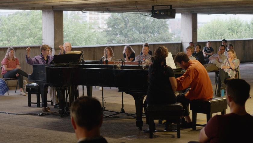 Before the not-quite-clear all-clear was given for distanced performances indoors, Bold Tendencies already had the perfect summer solution in the floor space beneath its rooftop terrace in Peckham’s former multi-storey car park. Never was its covering more needed than on Saturday night, when the perfect storms, apocalypses and incantations of pianists Pavel Kolesnikov and Samson Tsoy in Messiaen’s gobsmacking Visions de l’Amen gradually magicked away the torrential rain beyond and the city skyline slowly came into focus again.