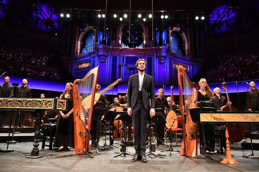 As ever with music of this type, there are many performance practice decisions to be made. The Pygmalion Ensemble played period instruments, and produced a wonderful array of sounds, including a watery, glistening passage for theorbos and harps in the "Nigra sum" movement. The choir was 35-strong, which is midway between the Andrew Parrott ideal of very small forces, and the massed choir approach. It seemed to balance well with the instruments, and the choir had, for the most part, clear diction and excellent ensemble.Raphaël Pichon conducts the Ensemble Pygmalion performing Monteverdi’s Vespers at the BBC Proms.There was a pleasingly democratic approach to solos. The named soloists, when they weren’t singing as such, re-joined the choir, and at other times members of the choir took solos from within the ranks. It is hard to identify all the soloists for praise: the men managed both to look like one another and not much like their publicity shots. But a trio of them gave a stunning reading of the motet “Duo Seraphim”, and there was a wonderful interplay between stage and gallery in “Audi coelum”: “Hear, O heaven, words” with the reply coming back from the heavens.