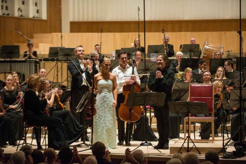 The anniversary season is seeing a number of world premieres scheduled and the opening concert, given by the Royal Liverpool Philharmonic Orchestra under chief conductor Vasily Petrenko, included the first performance of the American composer James Horner’s Pas de Deux. This is a relatively long concerto – it’s 27 minutes – scored for violin, cello and orchestra. The piece was commissioned by the soloists, brother and sister duo Mari and Håkon Samuelsen, with support from the Tom Wilhelmsen Foundation.