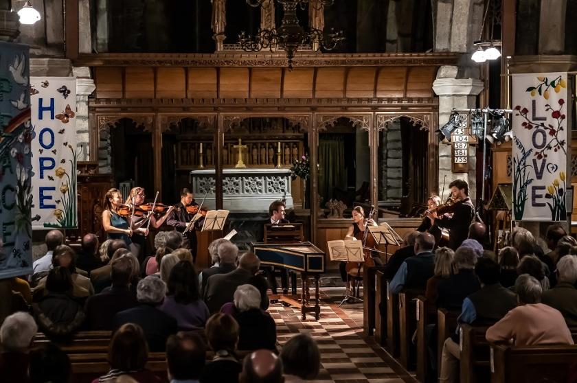 The Barbicans, if one may so call them, joined Waley-Cohen (pictured below), double-bass player Thea Sayer and harpsichordist Nathaniel Mander, for a Vivaldi Four Seasons in St Andrew’s Church, Ashburton – another one with a high tower (“inspiring,” declares Brian Watson in the Shell Guide to Devon). I hadn’t heard a live performance of this Classic FM favourite since a similar chamber version from the Razumovsky Ensemble led by Alexander Sitkovetsky back in 2009; now, as then, it struck me with its full vitality and range, not at all Des O’Connorish as Nigel Kennedy described it in a recent contretemps.