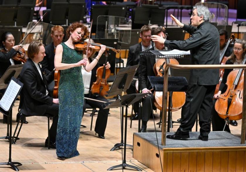 In his Serenade for violin, strings and percussion – it’s a pity Pappano didn’t at the beginning of the concert utter the words “Plato’s Symposium” or “gay love” – Bernstein strikes memorable gold for each of the ancient Greek male celebrants in turn; this is surely his most vivid concert-hall work (if one counts MASS as a thing apart). Janine Jansen, arguably the finest violinist in the world today, had the flu, but Carolin Widmann (pictured below), a late replacement, would certainly do. Her tone right at the exposed start wasn’t remotely beautiful, as Jansen would surely have made it, and as Baiba Skride so unforgettably did in a Dublin performance; but she knows the work inside out, had the forthrightness for the extrovert passages and the virtuosity for the “Eryximachus” scherzo, and worked infallibly well with the orchestra and Pappano – perfect teamwork.