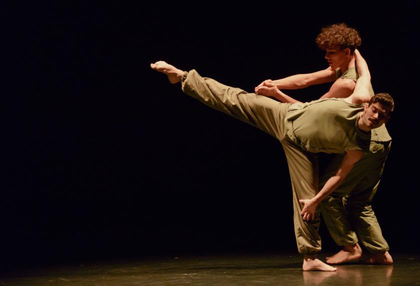 Maliphant (pictured left) also comes across as quiet and thoughtful, but rather more intense, an impression backed up by the mood of his piece Fallen. Where Scarlett's Serpent (pictured above) has Elysian lighting and a smooth Max Richter score for its supple pas de deux, Fallen takes place in a world of olive drab and deepest brown, a vaguely military place and one where, for all the dancers' grace, there's more sense of danger: falling could hurt, and the chittering voices, anxious strings and metallic thuds of Armand Amar's score don't seem to betoken anything benign. Maliphant himself admits there's a hint of the battlefield about it: I'd go as far as to say that the charged, enigmatic Fallen is what his (WWI-themed) Second Breath for English National Ballet should have been, but wasn't.
