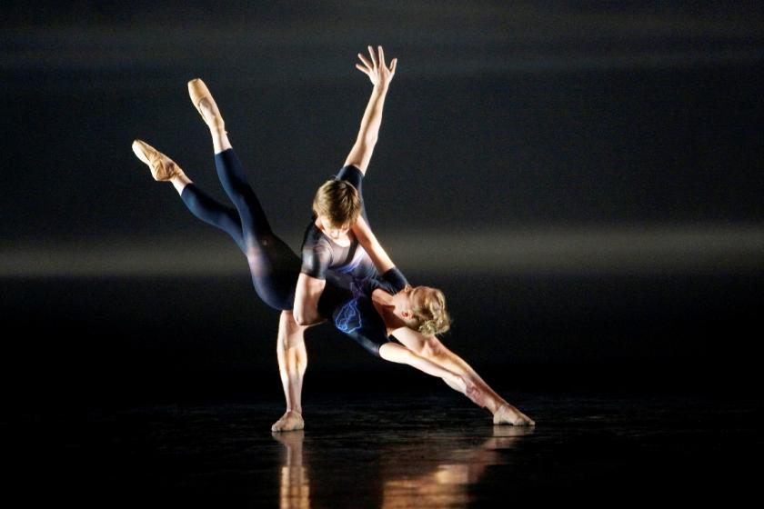 And certainly this triple reinforces that view. E=mc2 (right, photo: Roy Smiljanic) tops the bill, and remains on repeated viewings a work of dazzling originality. Based on an examination of Einstein’s theory of relativity (no, really, stick with me, it’s great), Bintley breaks the equation down into its three component parts, "Energy", "Mass" and "Celeritas (speed of light)". The first movement, all pounding percussion and sharp angles, is Balanchinean in its attack and ferocity, but shattered into sweetness by the recurrence of petite batterie, an English, Ashtonian lightness; "Mass" is a heavy, lyrical interlude of triplets before the perpetuum mobile that is "Celeritas" is unleashed upon us. (There is a solo break, before "Celeritas", entitled "Manhattan Project", an attempt to show the devastation caused by the practical application of the theory, in the atom bombs that were dropped on Japan. It is best overlooked as quickly as possible.)