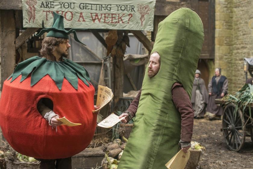 On arrival he meets a shifty Christopher Marlowe (Jim Howick), unsure of what to make of this wannabe writer who specialises in “bum jokes and people hit by sticks.” Marlowe’s career is on the skids, and the pair's only thespian engagement consists of their handing out leaflets while dressed as giant vegetables. Bill falls into the orbit of Ben Willbond’s oleaginous King Philip of Spain, planning to use a theatrical performance as a cover for regicide. With, er, hilarious consequences.