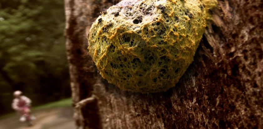 The creative, organisational and intellectual properties of slime mould are outlined in loving detail in Tim Grabham and Jason Sharp’s engaging documentary The Creeping Garden, though even this peculiar organism seems a little colourless when compared to the folks getting excited about it. Like the engaging amateur mycologist seen foraging in the Oxfordshire woods, for whom slime moulds are “a sideline”: Mark’s enthusiasm is so infectious that it’s hard not to get excited when he finds some, a mass of tiny yellow spheres buried in the soil.