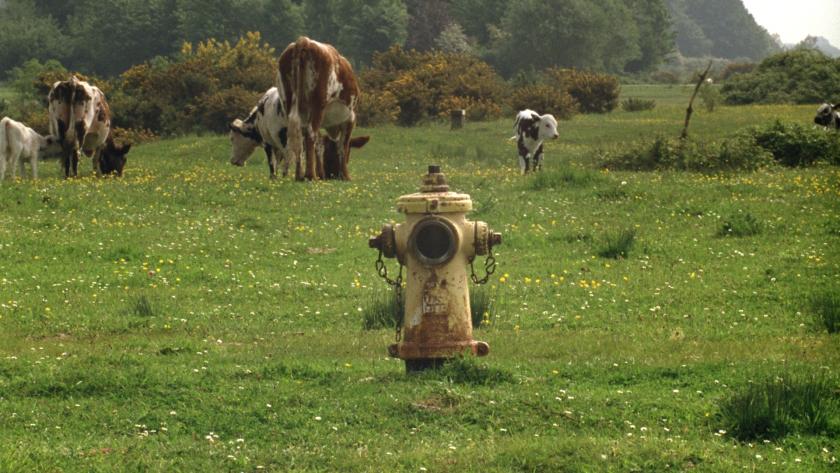 There are, though, sights and thoughts here you won’t find in any other film. England’s rustic landscape is still felt to be the key to its soul, like Iceland’s interior or Australia’s Outback. Keiller finds the nation’s history and destiny can be read in the way this Arcadia has been paved and pathed. As with Keiller ally Iain Sinclair’s tramp around the M25 in his book Edge of the Orizon, or J G Ballard and Brian Eno’s love of airports, Keiller’s camera stares at places we’re not supposed to really see or experience, as if they’re interruptions to landscapes they define: industrial estates, Tesco superstores, service stations. The code he cracks for this film finds a vast network of government oil pipelines running unremarked through sunny fields to extensive military and nuclear bases.