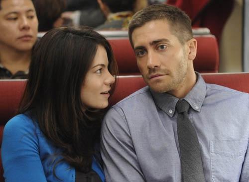 Indeed, what could be a more ordinary setting than a commuter train shunting its load of commuters from the suburbs towards their metropolitan destination (in this case, Chicago). This is where we first meet Jake Gyllenhaal's protagonist, who awakes in a seeming amnesiac state to find himself sitting opposite Christina (Michelle Monaghan). She's talking to him as if she knows him, but he hasn't a clue who she is. Bewildered, he visits the washroom, but the face he sees in the mirror belongs to another stranger, a schoolteacher (as he discovers from the wallet in his pocket) called Sean Fentress. Then the train is vaporised by a massive explosion.