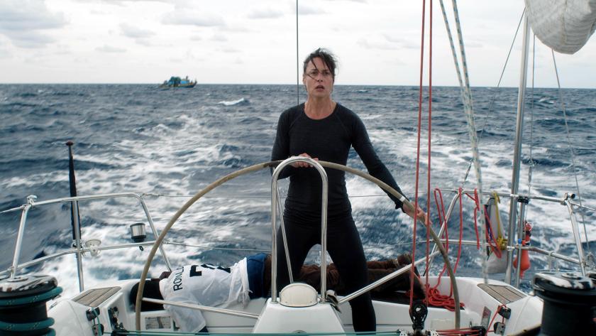 When German doctor Rike (Susanne Wolff) casts off from Gibraltar, the ocean’s vastness seems a challenging backdrop for a testing voyage. For a while in Wolfgang Fischer’s austerely beautiful film, she is silent and peacefully alone, relishing her freedom. When a storm rolls in, and her ship repeatedly slips into the trench between waves with her at the helm, Robert Redford’s lonely stoicism as the sailor of a sinking ship in All Is Lost (2013) comes to mind. There is something more joyous in Rike’s struggle, the satisfaction of a strong, determined young woman fighting the elements. But when a sinking refugee ship appears on the horizon, and a young boy, Kingsley (Gedeon Oduor Weseka), swims to be dragged exhausted onto her deck, her splendid isolation is shattered.